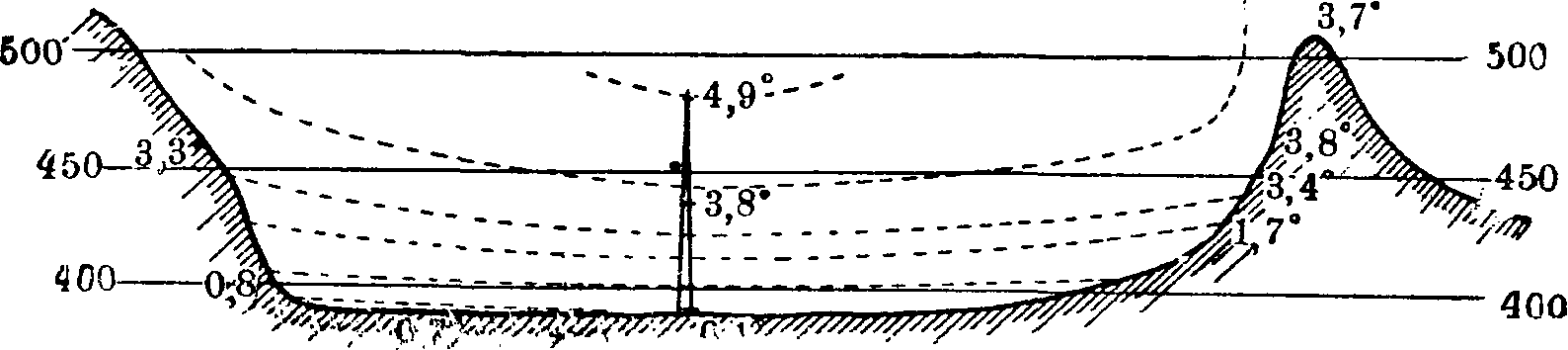 Помимо приведенных общих признаков климата для оценки территории в сельско-хозяйственном отношении существенное значение имеет характеристика вегетационного периода. С этой стороны в качестве первого приближения весьма важно знать продолжительность времен года: весны, лета, осени и зимы (рисунок 2). В основу построения карт положено число дней (весьма условные показатели) со средней суточной температурой от 0° до 10° для весны, выше 10° — для лета, от 10° до 0°—для осени и ниже 0° — для зимы. Продолжительность весны колеблется в СССР от 20 дней (Казакстан) до 80 дней (по морским побережьям), продолжительность зимы от 270 дней на крайнем С. до полного отсутствия зимы на Туркестанских долинах и на Черноморском побережьи, продолжительность лета от 20 дней в Якутии доходит до 250 дней в Гаграх и до 255 дней — в Термезе (Таджикистан). В пределах сравнительно небольших территорий, не только горных, но даже равнинных областей, в зависимости от рельефа, экспозиции, наличия болот и водоемов, крупных лесных массивов наблюдается большое количество микро-климатических особенностей, имеющих серьезное значение при размещении сельско-хозяйственных культур. Насколько велико значение перечисленных микроклиматических факторов, можно было бы (таблица 2.) иллюстрировать следующими данными. Температуpa почвы например на разных глубинах при одинаковой температуре воздуха (21°) по обе стороны склона в зависимости от направления его разнилась следующим образом (наблюдение 10 час. утра 23 мая 1903): 1) на глубине 4 сантиметров — северный склон 14°, южный склон 29°; 2) на глубине 8 сантиметров — 14° и 24°.