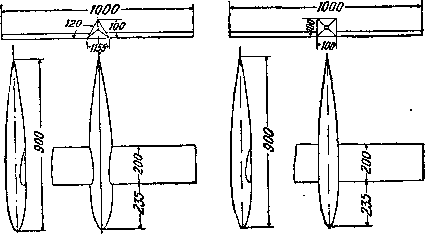 III. Закон подобия. Теоретически и экспериментально установлено, что аэродинамические коэф-ты различных тел зависят от формы тела, от его положения относительно набегающего потока и от ряда безразмерных параметров. Если можно пренебрегать весом среды, что при обтекании тел воздухом или каким-либо другим газом вполне допустимо, то основными безразмерными параметрами являются следующие: 1) число Рейнольдса где V — скорость, I — линейный размер тела, V — кинематический коэф. вязкости; 2) число Бэрстоу