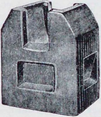 6. Применение переработанного Б. Базальтовая промышленность еще слишком молода, чтобы молено было в настоящее время предвидеть все виды применения нового материала. Пока наметились следующие: а) в сетях сильных гоков высокого и низкого напряжений—линейные изоляторы на открытом воздухе (фигура 0), опорные изоляторы, изоляторы третьей шины эдектрич. ж. д. и метрополитенов (фигура 7), выводные изоляторы на высоком напряжении; б) в сетях слабого тока и в радиосвязи—телеграфные и телефонные изоляторы, оттяжные изоляторы и прочие изоляционные части для антенн; в) в электрохимической промышленности—изоляторные подставки для аккумуляторов, посуды, ванн и прочие; г) в общей химпч. промышленности—кислотоупорное оборудование, в том числе всевозможная посуда, ванны, краны, пропеллеры и т. д., оборудование на темн-ру до 1 000; д) в строительстве — изоляционные мостики (фигура 8), мостовые, лестничные ступени,облицовкастен н полов, особенно когда имеются кислые испарения, и т. д.