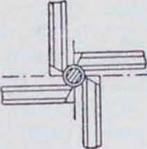 ный). Автоматическая подача материала, который подлежит рубке, осуществляется двумя роликами, оси которых находятся в одной плоскости и параллельны между собой. Ролики примыкают друг к другу своими ободками. Каждый из роликов имеет на своем ободке овальную канавку. На стыке ободков обоих роликов через отверстие проходит подлежащий рубке материал. Ролики зажимают материал и перемещают его при каждом повороте. Движение ролики получают от главного механизма ножниц при посредстве храповика с собачкой; движение это периодическое. Угол поворота роликов соответствует длине заготовки, которая также регулируется специальным упором. Между роликами и ножами устанавливается выправляющий прибор, состоящий из пяти роликов, расположенных в два ряда. Расстояние между этими двумя рядами роликов регулируется соответственно диаметру материала с таким расчетом, чтобы уничтожить волнистость его. Операция рубки производится двумя ножами: неподвижным, установленным на столе станка, и подвижным, установленным на супорте. Оба ножа изготовляются из полосовой стали. Неподвижный нож имеет конусное отверстие. Основание конуса обращено в сторону подающих роликов. С противоположной стороны отверстие это образует на рабочей поверхности ножа режущую кромку в виде полукруглой выемки, несколько скошенной в сторону наружной (нерабочей) части ножа. Для правильной работы ножей необходимо, чтобы ось режущей кромки неподвижного ножа совпадала с осью выемки подвижного ножа, а также, чтобы рабочая поверхность подвижного ножа плотно прилегала к рабочей поверхности неподвижного ножа. Производительность ножниц при рубке на них заготовки из мотков проволоки (диаметром до И» миллиметров) достигает 35 000 штук за 8-часовой рабочий день; при этом 1 рабочий обслуживает 2—3 станка. Заготовка, полученная на ножницах, называется первой заготовкой. Длина первой заготовки зависит от конечных размеров болта, который должен получиться в результате обработки заготовки. Один из концов первой заготовки нагревается в специальной печи с решетчатыми стенками (фигура 2). В Б. п. употребляют нагревательные печи, работающие на нефти или на коксе; по форме они цилиндрические, прямоугольные и квадратные. Цилиндрические печи с вертикальной осью чаще всего поворотные вокруг своей оси. В основном все типы печей состоят из след, частей: постамента в виде чугунной колонки, чугунной плиты, служащей основанием для самой печи, железного или чугунного каркаса, выложенного огнеупорным фасонным кирпичом, и воз-духо- и нефтепровода. Наибольшим распространением пользуются печи, выложенные фасонным кирпичом с круглыми отверстиями (огнеупорные решетки). В эти отверстия закладывают заготовку для нагрева и через них лее выходят горячие газы, т. к. эти печи строятся без газоотводящих каналов. Расход топлива в них составляет, примерно, 100—250 килограмм кокса или 50—100 килограмм нефти за 8-час. рабочий день в зависимости от размеров печи. Давление воздуха в печи измеряется, примерно, 150—200 миллиметров вод. столба. В последнее время за границей широко