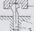 а) Гайки холодным способом изготовляются из калиброванного полосового железа на специальных эксцентриковых прессах с автоматической подачей материала. Инструмент, применяемый в холодногаечном производстве (фигура 11), состоит из бородка А с матрицей к нему для пробивки центральной дыры в гайке, из рабочего пуансона Б с матрицей для образования граней гайки и из контрольного пуансона В