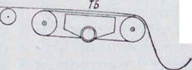 Сукно первого пресса, передав бумагу на валик О., направляется обратно ведущими валиками те, те3 к натяжному валику те«. Иногда сукно проходит еще через промывной аппарат (не показан на фигуре 4), состоящий из водяного спрыска и била; наконец, сукно возвращается к первому валику те,.