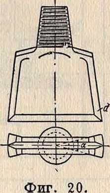 нижняя часть которой оттянута и заострена, образуя режущее лезвие В, и цилиндрич. или коническое утолщение—резьбу С. Такое долото называется зубильным. Но у большинства долот боковые грани лопасти расширены, образуя т. н. перья (фигура 20, d), наружная поверхность которых выгнута по дуге окружности. Зубильные долота применяются при прохождении пород твердых или средней твердости. При бурении в породах мягких или даже средней твердости предпочитают пользоваться долотами с перьями. Кроме обыкновенных долот существуют еще специальные долота. При очень твердых породах употребляют долота-болванки, с более прочными, утолщенными лезвиями и перьями. При большом скоплении мелких кусочков железа применяется пикообразное зубильное долото. В нек-рых случаях употребляются круглые или полукруглые долота. Долота обыкновенно отковываются из специальной вязкой стали и лезвие их закаливается. Литые долота не получили распространения, т. к. они легко ломаются во время работы. Основной размер долота, то есть ширина лезвия, соответствующая диаметру скважин, в Бакинском районе изменяется от 1 042 миллиметров (42-дм. скважина) до 178 миллиметров (8-дм. скважина).