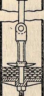 балансира. В наивысшей точке подъема концы клещей заходят в конический раструб упорного фонаря. Под нажимом корпуса верхние концы лап клещей сближаются, а нижние расходятся и освобождают при этом головку а, который падает свободно вниз, скользя по штоку. Пружины упорного фонаря должны быть настолько тугими, чтобы они могли удерживать фонарь на месте во время удара клещей об его конический раструб.