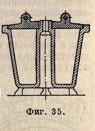 Иногда после нарезки зубцов внешнюю часть колес цементируют и закаливают; для этого зубчатки пакуют стопками в особые горшки (фигура 35), которые помимо экономии в цементирующем порошке дают еще то преимущество, что предохраняют от цементации среднюю часть Колес.