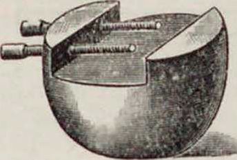 πιό кислотой—крепкой водкой (сан forti1). Гравирование штампов и сургучных печатей производится штихелями и сверлами па стальной, предварительно отпущенной болванке, которая йотом закаливается. Для Удобства гравирования печать или иной какой-либо предмет зажимается в специальную шарообразную железную колодку, которая, обладая большим весом (до 15 килограмм), позволяет легко поворачивать обрабатываемую поверхность в желаемых направлениях фигура 5).