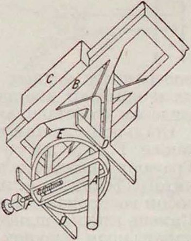 краски глубину штриха. Простейшая гравировальная машина (фигура 6) состоит из двух параллельных призматических направляющих А, расположенных над металлической доской или камнем; но ним ходит тележка с передвигающимся в ней держателем В, в к-ром зажимается штифт с алмазом на конце. Движениями алмаза в направлении, перпендикулярном направляющим, управляет микрометрический винт, автоматически поворачивающийся на необходимый угол при