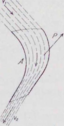 I. Водяные турбины. Если вода протекает по неподвижному сосуду (каналу) А (фигура1), причем при входе и выходе она соответственно имеет скорости νι и ν2, отличные друг от друга по величине или направлению, то вода действует на стенки канала с силою Г,