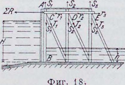 1) V <у (фигура 12). На голову подкоса А действуют следующие нагрузки: половина давления воды АВВА, равная и приходящаяся на точку А часть давления воды ADEA, равная Я". Расчетное давление воды на голову подкоса А (фигура 13) равно: