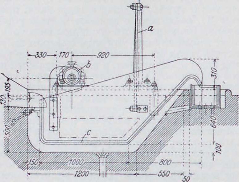 от баланса, после того как остальная его древесина превращена в волокно. Прежде чем вся масса поступит на дальнейшую обработку, она должна быть пропущена через крупную решетку, которая, пропуская годную массу, задерживала бы более или менее крупную щепу. Щеполовки по б. ч. представляют собой металлич. корыто, дном которого служит такая решетка в виде медного дырчат, листа. Щеполовка наиболее употребительной формы изображена па фигура 6: одним своим концом корыто висит па двух металлических полосах а, а задняя часть его соединена, помощью двух эксцентриков Ь, с приводным валом и получает т. о. колебательное движение в окружающем ще-половку каменном резервуаре. Вода, стекающая через слив из-под дефибрера и уносящая с собою дефибрированную древесину и неразмолотуго щепу, поступает в это качающееся корыто, проходит вместе с массою сквозь прорези его дна с а более крупная щепа остается на решетке.