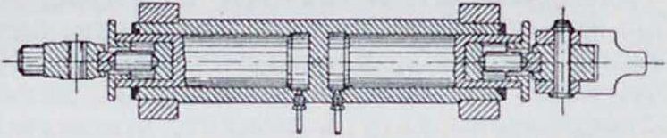 двух типов: диафрагменн ы е (фигура 1), в которых поршень отделен от жидкости (глицерина с водой или масла) резиновой (СССР) или тонкой латунной диафрагмой (Германия), и плунжерные (фигура 2) с непосредственным давлением поршня на жидкость. Первый тип проще и надежнее, но менее точен, чем второй; динамометр, изображенный на фигуре 2, измеряет не только тягу паровоза, но и давление поезда на паровоз. Кроме манометра, почти всегда имеется самопишущий прибор, записывающий измеряемую силу на ленте, приводимой в движение от оси вагона. В нек-рых Д. в имеются, кроме того, приборы, непосредственно измеряющие мощность и рабо-