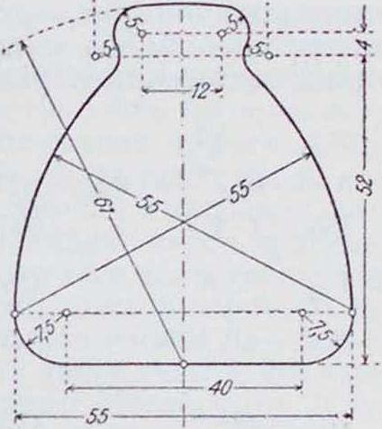 Шпильрейн) заключается в устройстве электродов в виде поверхностей, равноудаленных отповерх-ноети катеноидной. Четвертый способ (Аллен)—плоские круглые электроды снабжают тяжелым охранным кольцом, подложен-ным дополнительным слоем Д. Пятый способ— окружают электрод системой охранных колец-конденсаторов (фигура 13) постепенно уменьшающейся емкости, выравнивающих градиент внутреннего поля (Зон-ненштейн). Практи-- чески чаще всего пользуются плоскими электродами с закругленными краями. Те же электроды. при известном усовершенствовании, применяются в грушевидной форме (фигура 14. размеры в миллиметров) или в виде электродов Роговского (фигура 15). Ан-глийск. нормы рекомендуют пробой между диском и шаром радиусом в 25 миллиметров, причем электрич. крепость Е получается от помножения P/ft на особый коэфф. β, к-рый представляет собой функцию толщины ft и дается таблицей или графически. Наконец,