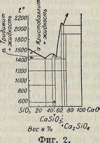 1 540° и Ca2Si04 с Гпл. 2130° — и евтектики с соответственными t°n„