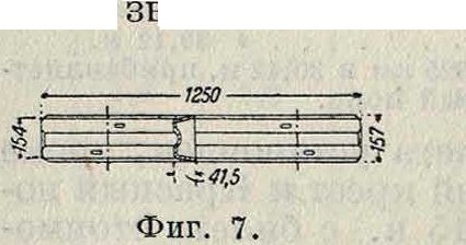шпалах при помощи зажимов (фигура 6) и зажимных болтов. Шпалы (фигура 7)—коробчатого типа с закрытыми концами; на верхней поверхности шпалы имеют по два наискось расположенных отверстия для укрепления зажимов и зажимных болтов (фигура 8). Каждая шпала соединяется с рельсом двумя заясимами. Звенья соединяются между собой плоскими накладками и болтами. Стык звеньев — на весу. Накладки с двумя болтами (постоянная принадлежность звена)