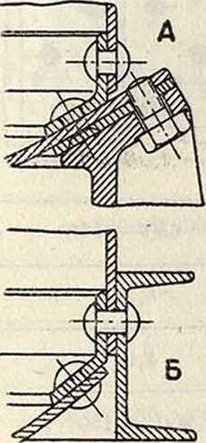 теми же веществами вой пряди, положенной зигзагом вокруг стержней заклепок, и т. д. В соединениях, подверженных действию высокой t°, для прокладок берут асбестовый шнур или картон. Листы вертикальных стенок соединяют чаще всего одно-