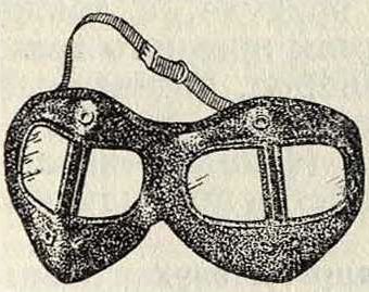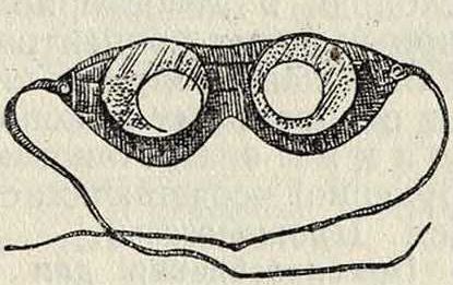 1) Для защиты от отлетающих осколков и других твердых частиц, могущих ранить глаз, а) Приспособления из металлической сетки (очки, щитки, маски). Преимущества их—легкость, прочность, евободн. обмен воздуха, незапотева-ние; недостатки— фИГ. 5.