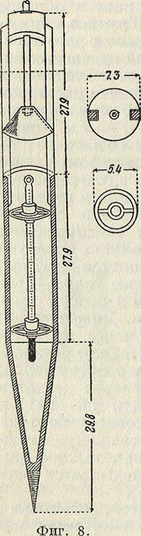 Помимо указанных свойств, учитывают наличие в 3. вредителей из мира насекомых, их личинок, выделений и тому подобное. При анализе 3. большое значение имеет то, откуда взята проба для анализа, которая должен быть средней для партии 3. Пробы берутся из вагона, мешка и т. д. при помощи щупов: простых (фигура 7) или более сложного устройства (фигура 8). Вес пробы не должен быть меньше 1 килограмм. Если пробы берутся из большой однородной партии 3., например нескольких вагонов, то следует брать не меньше одной пробы из