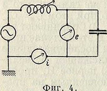 Из м е т о д о в абсолютных наиболее употребительны в технике определения С и L по ф-лам закона Ома для переменного тока. Действительно, при схеме соединений (фигура 4) получается (г в А, е в V, С в F) :