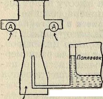 работа двигателя на его нормальном режиме. Высотная регулировка в авиационных К. этой фирмы осуществляется при помощи крана, соединяющего поплавковую камеру со всасывающей трубой, то есть по схеме А фигура 22.