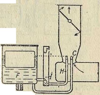 4) Принцип Зенита. Требуемый состав рабочей смеси достигается при помощи компенсационного колодца J (фигура 21).В К. системы Зенит имеются две форсунки: главная форсунка С, нормально соединенная с поплавковой камерой F, и компенсационная форсунка Н, которая конструктивно выполняется в виде трубки, охватывающей