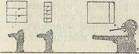 По практике заграничных заводов способ производства жестянок считается устаревшим, если не применяются сборочные (отлапочйо - закаточные) автоматы. В этом случае ход производства состоит из следующих операций (фигура 14): 1) разрезка жести на ножницах, 2) изготовление корпуса, 3) отладка корпуса банки, 4) изготовление концов, 5) прикатка донышка и 6) испытание банок на герметичность.