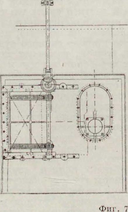 из положения 4 на фигуре 9). Для закрытия всех дверей главный кран е поворачивают в положение е", указанное на фигуре 9; тогда все двери с нормальным положением кранов к и л (положение 3) закрываются, двери, бывшие раньше закрытыми (положение 4), остаются в прежнем положении. Чтобы открыть одну из дверей, закрытых при положении центрального крана е", кран л ставят в положение 5; однако, как только рукоятку л отпускают, под действием груза она автоматически поворачивается обратно в положение 6, и дверь вновь закрывается; при открытии двери рукоятка крана к должен быть одновременно повернута кверху, что выполняется автоматически при помощи тяги с прорезом, связывающей рукоятки кранов к и л.