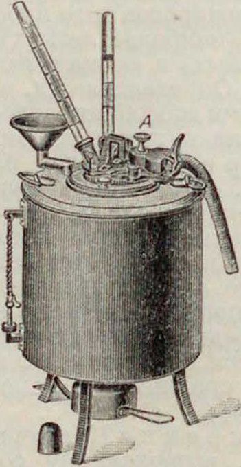 Нефтеперегонный куб для периодической перегонки представляет собою горизонтальный цилнндрич. железный котел,
