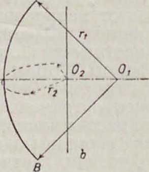 Сферо-цилиндрическая очковая линза для одного и того же зпачения астигматизма глаза м. б. изготовлена самыми разнообразными комбинациями значений рефракции сферич. и цилиндрич. поверхности. Наиболее выгодной формой в смысле уменьшения астигматизма для наклонных пучков является сферо-цилиндрич. мениск, у которого одна сторона выпуклая, а другая вогнутая, хотя и в этом случае астигматизм наклонных пучков имеет значительную величину. Более совершенными в этом отношении являются сферо-то-р и ч е с к и е линзы, у которых одна поверхность сферическая, другая—торическая, образованная вращением дуги круга АВ около оси, проходящей через 02 (фигура 7, а и б). При гх < г„ поверхность называется к о л-басообразной тор и ческой поверхностью (фигура 8, а), при гх > г 2—б очкообразной дорической поверхностью (фигура 8, б). Для обеих форм показаны (фигура 8) план-торическая положительная и план-торическая отрицательная линзы. Если