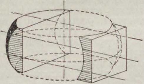 Очковые линзы для корригирования астигматизма. Если одна или несколько поверхностей оптич. системы глаза имеют различные радиусы кривизны в различных направлениях (меридианах), то рефракция глаза в различных меридианах будет различна. Параллельный пучок от удаленной точки соберется на сетчатке и даст изображение в виде линии только для одного сечения глаза, для перпендикулярного первому сечению он соберется в виде линии же (перпендикулярной к первой) или ближе или дальше сетчатки (явление астигматизма глаза на оси). Если в одном меридиане, например вертикальном, рефракция глаза нормальная, а в горизонтальном—миопическая или гиперметропическая, то при рассматривании удаленного креста из перекрещивающихся вертикальной и горизонтальной линий, на сетчатке получается резкое изображение горизонтальной линии, размытое—вертикальной, как получающееся перед или позади сетчатки. Для корригирования астигматизма служат цилиндрические очковые л и н з ы. Обычно одна поверхность цилиндр ич. линзы плоская, другая цилиндрическая—вогнутая или выпуклая. Линия, проходящая через центр цилиндрич. линзы и параллельная образующей цилиндра, называется осью цилиндрич.линзы.Плоскость, проходящая через ось цилиндрич. линзы, пересекает обе поверхности по прямой линии, следовательно радиусы кривизны обеих поверхностей в этом сечении равны бесконечности, а рефракция по формулам (3) и (4) равна нулю. Плоскость, наклонная к оси цилиндра, пересекает их по кривой; чем больше угол между этой плоскостью и осью цилиндра, тем больше кривизна этого сечения. Плоскость, перпендикулярная к оси цилиндра, пересекает цилиндрич. поверхность по кривой максимальной для данного цилиндра кривизны. В этом сечении цилиндрич. линза имеет максимальную рефракцию. Фокусное расстояние, главная и вершинная рефракции цилиндрической очковой линзы определяются так же, как и для сферической; они относятся к меридиану, перпендикулярному к оси цилиндра. Если в плоскости, перпендикулярной оси цилиндра, рефракция будет Л0, то в плоскости, наклонной к оси под углом φ, рефракция будет D=D0sin2 <р; в плоскости, проходящей через ось, <р=0 и П=0. Цилиндрич. очковые линзы нумеруются по задней вершинной рефракции, отнесенной к плоской поверхности. При установке цилиндрич. линзы перед астигматич. глазом ось цилиндра помещается параллельно тому меридиану глаза,^для которого рефракция нормальна.