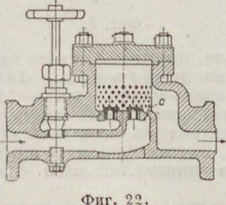 трубы (фигура 15). Лёффлер при давлении в 130 atm и перегреве 500° соединяет трубы гл. образом сваркой, но в местах, где фланцы необходимы, применяет фланцы с конич. у плотненном (ф и г. 1G). По указанию фирмы фланцы работают вполне удовлетворительно. Та лее фирма применяет вместо тройников прямоугольные коробки с приваренными к ним трубами. На фигуре 17 показана такая коробка для соединения двух коллекторов пароперегревателя. Па фигура 1В дана заслонка для давления в 130 atm, а на фигуре 19 для давления в 225 atm. Устройство обратного клапана, позволяющего проход пара в од