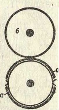 Фигура з. чати этого [типа, где а—печатная форма, б—краска, в—бумага, г—пластина для оттиска, д—талер. 3) Глубокой печати и металлографские, где печатная форма углубленная (фигура 3, А—обозначения те же, но г, г—вальцы, через которые под давлением прокатывается покрытая краской форма с наложенной на нее бумагой и покрытая сукном е; Б—лист бумаги, отпечатанный по 3-му способу и перевернутый оттиском вверх).