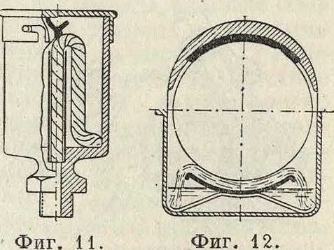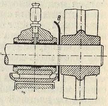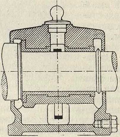 бывает сделать небольшие шаровые опоры (фигура 29 и 30), в случае же действия больших осевых усилий необходимо шаровые опоры усилить, как показано на фигуре 31, изображающей П. завода Piat; из чертежа видно, что сферич. опоры погружены в масло, что спо