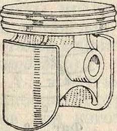 прореза в последней (фигура 6). Пружинящая юбка позволяет несколько уменьшить зазор в нижней части без опасения заедания поршня в цилиндре при Нагревании. Для дальнейшего улучшения условий работы легкого П. в нем делают вырезы под ба-бышками. Общий вид такого П. показан на