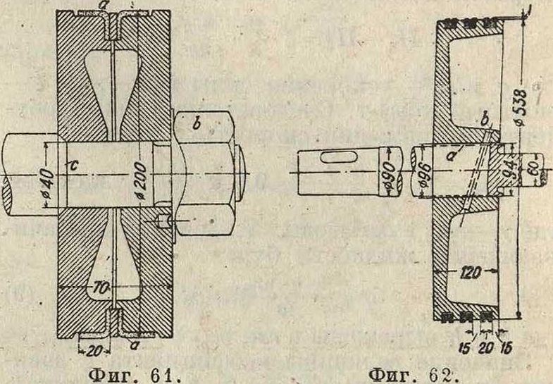 Для дисковых П. с отверстиями для клапанов (фигура 69) обычно опасным сечением является наиболее узкое сечение по линии Ah между клапанными отверстиями вблизилорш- невой втулки. Каждое из ребер, укрепляющих П., должно быть достаточно прочным для восприятия всей силы .от давления aim, действующего на площадь F1 (на фигура 69 площадь фиг· 69·
