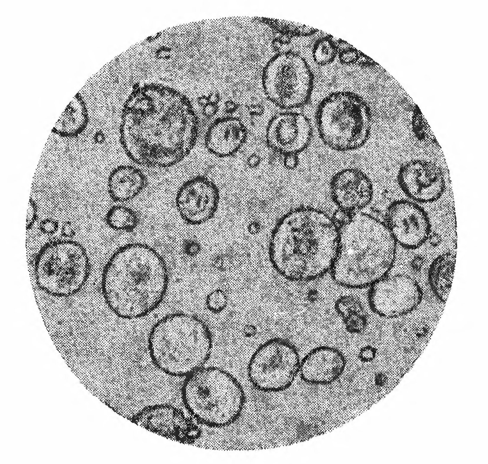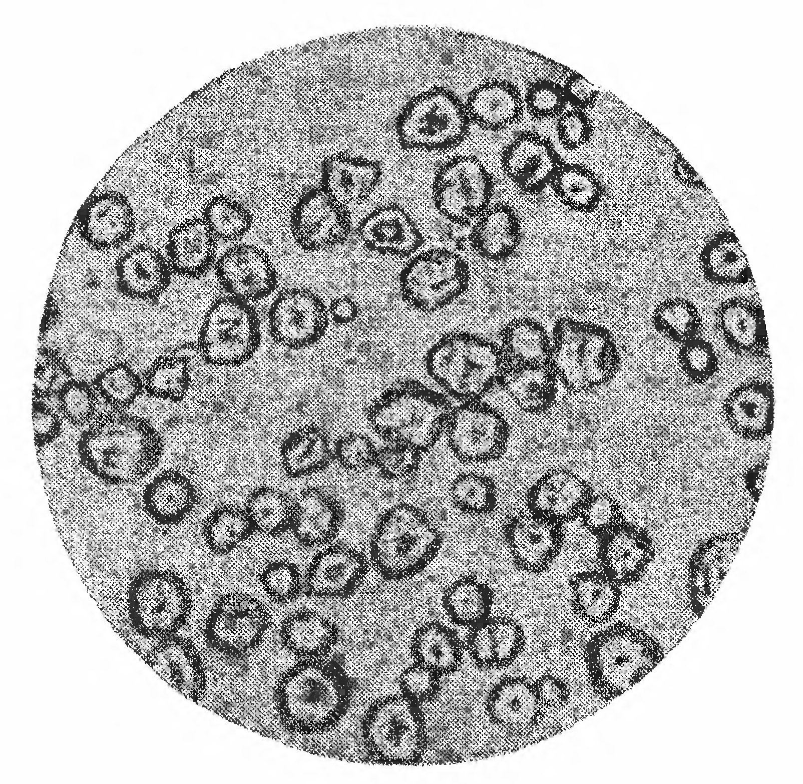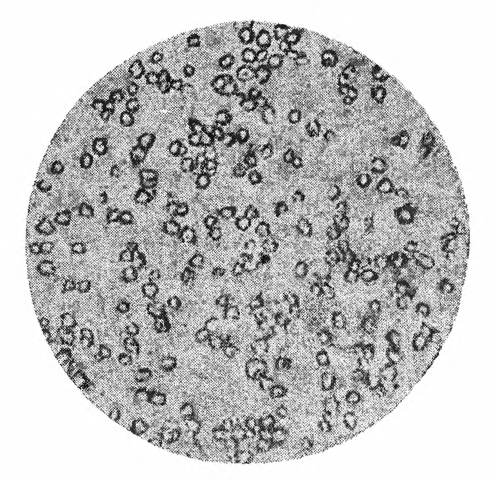 Крахмал состоит из очень маленьких зернышек, видимых только под микроскопом. Крахмалы, добытые из различных растений, по химическому составу одинаковы, но размеры и форма зернышек различны. На прилагаемом рисунке представлены зерна крахмала при увеличении в 300 раз, добытые из различных растений. На рисунке 289 — зерна картофельного крахмала, на рисунке 290 — пшеничного, на рис, 291—кукурузного и на рисунке 292— рисового крахмала. Зерна картофельного крахмала наиболее крупные и достигают 100 µ 2) в поперечнике; они обладают ясно выраженной слоистостью, причем слои расположены „эксцентрично“, то есть центр их наслоений находится не в средине, а сбоку зерна. Зерна пшеничного крахмала мельче (до 30 µ) и чечевицеобразны. Маисовый (кукурузный) крахмал еще мельче (до 20 µ), зерна его многоугольны и имеют в середине звездообразную трещину. Зерна рисового крахмала тоже многоугольны, но еще мельче — всего около 6 µ в поперечнике.