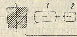 верхними подушками ставятся специаль-ные клинья для точной регулировки обжатия. Кроме того и вообще для целей особенно точной П. лент, так же как и в листовых станах, заменяют винтовое нажимное устройство клиновым; в этом случае клинья вдвигаются и выдвигаются также от штурвального колеса. Помимо настройки вв и регулировкинаходу вытяжкаре-гулируется также работой нажимного пресса и соответствущей смазкой. В виду полной недопустимости разогревания вв применяют внутреннее водяное охлаждение их и центральную смазку подшипников минеральным маслом. В качестве материала для вв применяется главн. образом хромоникелевая сталь, чугунные же валки, хотя бы и закаленные, не применяются вовсе. В виду неизбежного наличия больших внутренних напряжений, закаленные стальные валки требуют весьма осторожного с ними обращения—предварительного легкого нагрева перед П. (пропусканием подогретой воды через внутреннюю полость) и предохранения от разогревания их во время работы, хранения их в помещении с постоянной t° и прочие Выкрашивание поверхностного слоя вв, лопание вдоль оси и даже на отдельные части весьма нередки как во время работы, так и при хранении вв. Вследствие весьма больших требований к ленточным изделиям в смысле точности размеров по толщине и сильного влияния при холодной П. всякой неравномерности обжатия и при наличии больших деформаций вв при П., особые трудности представляет подбор профиля вв, к-рый придается им путем шлифовки; вопрос решается вообще удовлетворительно только при постоянстве работы стана в смысле размеров прокатываемой ленты и обжимов, т. к. каждая П. требует своего профиля. Кроме того оказывают влияние жесткость ленты, упругие свойства самого валка и его t° по всему сечению. В качестве примера в таблице 33 приведен подбор выпуклости вв ленточных дуо-станов Мансфельдского завода (Германия).