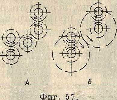 ющие и раздельно и совместно бла-годаря расцепляющему устройству. Последний тип нажимного механизма дает возможность легкой регулировки положения верхнего валка без разобщения шестерен, но является более тяжелым сравнительно с обычным устройством. Диам. вв листовых станов не превосходит 600 миллиметров при 30 об/м. (и ниже). Тонкие листы прокатываются в •складку, причем применяется о к л а д, то есть поверх" прокатываемой пачки и под низ ее кладут жесткие листы. В виду того что по мере уменьшения толщины прокатываемых листов увеличивается влияние разности •окружных скоростей обоих вв, являющейся следствием известной разницы в их диаметре после перешлифовок, необходимо вводить в передачу к верхнему валку фрикционные устройства (фигура 146), делать ре-