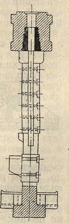 нижнее нажимное устройство, действующее от верхнего нажимного устройства через вертикальный передаточный вал. На вертикальном валу, как и на горизонтальном, соединяю-
