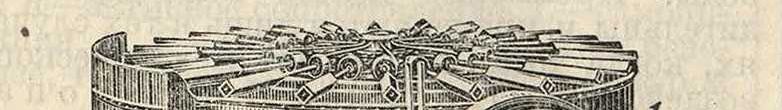 щее приспособление «лоцман» и далее через винтовые расправители, расположенные перед каждой парой отжимных валов. Проходные аппараты снабжаются билами, при помощи которых достигается более тщательное пропитывание ткани жидкостью. Била состоят из нескольких полированых бронзовых брусьев, укрепленных по валу; их приводят в быстрое вращение, и они с силой разбрызгивают находящуюся в ящике жидкость на ткань, которая т. о. основательно промывается. Било м. б. устроено итак, обр., что оно вращается навстречу товару, ударяет его планками, через отверстия которых брызжет горячая вода, поступающая через полую ось била. Заводом Гаубольд предложено било (фигура 9), состоящее из свободно качающихся черпаков. Вращающиеся черпаки 2 захватывают воду и с силой бросают ее на ткань. Производительность проход-