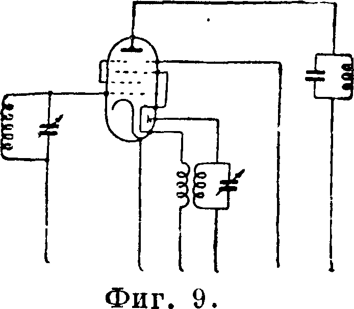 гептодов (схема суперного конвертера с этими лампами см. Электронная лампа), а также октодов и триод— гексодов. Схема конвертера с октодом показана на фигуре 8. Она отличается от конвертера с гептодом тем, что между экранированной 5-й сеткой и анодом расположена еще одна (шестая по счету) сетка — противодина-тронкая, соединенная с катодом. Благодаря
