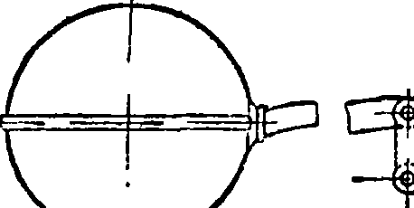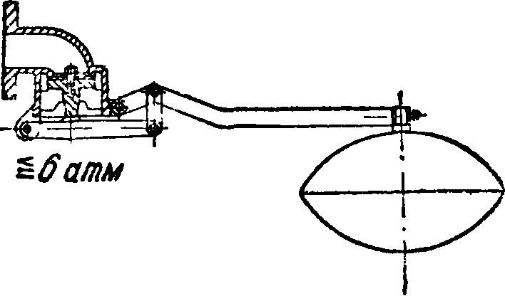 дах разнообразного назначения и предохраняющих последние от непреднамеренного опорожнения и от перелива воды. Вентильные части делаются из меди или чугуна, а рычаг — из стали. Уплотнение делается при холодной воде из кожи, а при теплой воде — из резины или фибры. Соединение вентиля со стенкой сосуда производится посредством фланцев или винтового соединения или припаиванием штуцера. Для повышенного давления целесообразно применять поплавковые вентили, указанные на фигура 4. Объем поплавка, погруженного наполовину в воду, м. б. определен из равенства