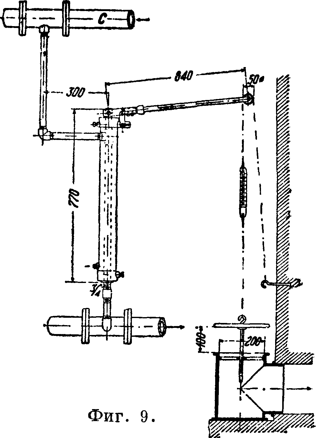сматриваемого Р. тяги (фигура 10) может вращаться вокруг болта dt вследствие чего место прикрепления прибора независимо от положения воздушного клапана. В Р. тяги сист. Самсон используется прямая труба, в к-рую вставлен сменный с металлич. шлангом, заполненным весьма чувствительной по отношению к изменению f жидкостью (петролей-ный эфир и тому подобное.); труба вставляется непосредственно в котел, в примон-тированный штуцер или в подъемный, а также и обратный трубопроводы.