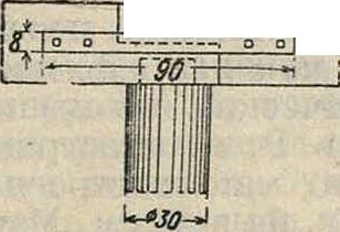 Под инженерные сооружения Р. на сваях строят след. обр. Сваи обычно перекрывают насаженными на них прогонами, на которых лежат своими врубами поперечины и половой настил. Однако помимо этого нормаль ного расположения существуют другие способы расположения и крепления частей Р., как это наир, видно на фигуре 15; здесь прогоны, расположенные поверх поперечин, скрепляются с ними железными болтами, а со сваями— железными хомутами; половой настил отсутствует, а головы свай вместе с их креплениями забетонированы. На фигуре 16 показано соединение работающих на растяжение деревянных свай с деревянной насадкой. Такое же соединение со сваями применяется, если сооружение м. б. подвержено напору воды снизу, наир, в шлюзах и доках; шипы делают сквозные и сверху расклинивают или насадку связывают со сваями при помощи скоб. В тех случаях, когда свайное основание устраивается для поддержания шлюза или дока, проме-