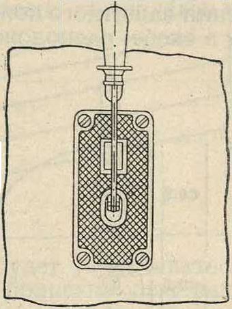 На фигуре 5 изображен однополюсный переключающий Р. (переключатель). Ток, подведенный к контакту, около которого повертывается нож, идет через нож к верхнему или нижнему контакту в зависимости от того, в который контакт врублен нож. При применении защитного кожуха рукоятка Р. крепится в скобе, расположенной снаружи кожуха.
