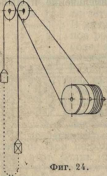 где Ω—максимальная угловая скорость барабана в течение подъема в скГ1 (скорость при нормальном числе оборотов двигателя); η— кпд зубчатой передачи, если таковая имеется; Mefr—эффективный момент вращения на валу барабана, к-рый м. б. определен по квадратичной ф-ле: