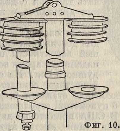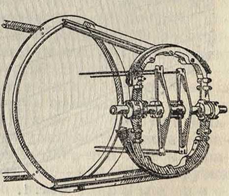 помещается внутри колеса, имеющего в этом случае особую конструкцию. Одним из надежных типов таких колес является колесо самолета Брегэ 19, литое из электрона, с амортизацией из резиновых шнуров (фигура 13). На самолетах большого тоннажа устанавливают колеса большого диаметра (фигура 8, вкл. л.) или же сдвоенные колеса по типу самолета Ю38 на особой траверсе, литой из электрона (фигура 10, вкл. л.), или по типу самолета Са 90 РВ, расположенные рядом (фигура 9, вкл. лист). Колеса часто снабжаются тормозами с механич., гидравлич. или пневматич. приводом. Нек-рое распространение получили колеса с пневма-тиками низкого давления, особенно для установки взамен костыля; они хоро-