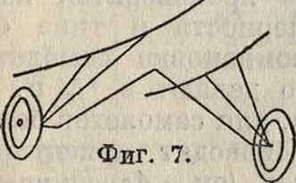 Шасси современных самолетов в связи с увеличением тоннажа и повышением посадочной скорости конструктивно совершенствуется и развивается, переходя от простейшего типа шасси со сплошной осью, встречающейся у малых, преимущественно военных, самолетов (фигура 6), к шасси с разрезной осью или полуосями, поднятыми вверх и дающими ббльшую безопасность при посадках на неровные аэродромы. Шасси больших самолетов в подавляющем большинстве случаев представляет собою полуосную схему, раздельно крепящуюся к крыльям непосредствен- щ» но или к подкосам кры-льев, причем последняя схема применяется пно-гда и у малых самолетов (фигура 7 и 8). Полуоси и оси шасси обычно делают в настоящее время из труб высококачественной стали, термически обработанными, амортизационные подкосы — из стальных (чаще высококачественных) труб, а задние подкосы — иногда из дур-алюминиевых труб.