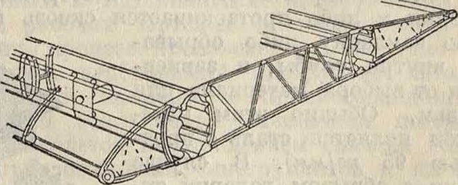 нервюр корытного профиля—с небольшой отбортовкой. Крепление осуществляется двумя стержнями по бокам лонжерона, имеющими
