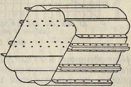 упоры, захватывающие отбортовку полок лонжерона. После сборки все крыло опускается в ванну для покрытия эмалью. На фигуре 48 показаны конструкции более сложные, которые дают большую прочность на кручение и гл. обр. имеют в виду возможно большее упрощение сборки лонжерона и крепления нервюр. Для этой цели профили как стенок, так и полок лонжерона имеют отбортовки, перекрывающие одна другую. При сборке таких лонжеронов