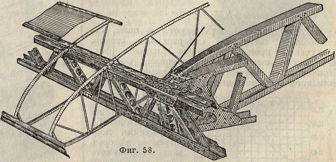 или иной модификации те же профили, как это можно видеть из фигура 54, представляющей детали набора крыла фирмы Глостера, и из фигура 55 — лонжероны фирмы Авро. На фигуре 56 приведена конструкция стальных лонжеронов, применяемых фирмой Анрио и представляющих с современной точки зрения совершенно безграмотное сочетание плоских площадок с малой высотой полки. Как видно из чертежа, для по-